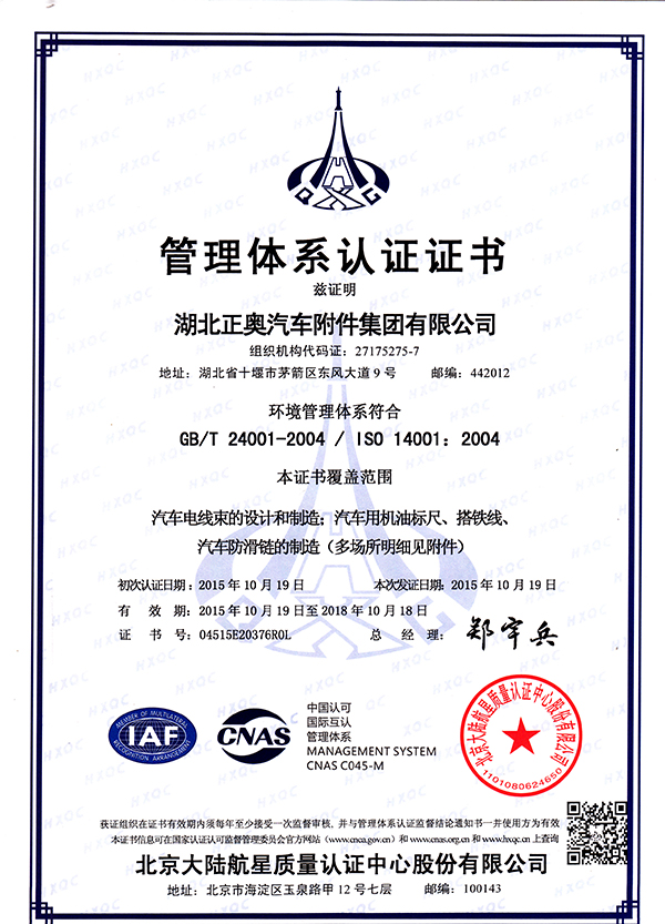 環(huán)境體系證書