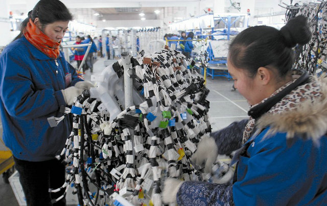 上圖是我公司工人正在生產(chǎn)汽車電線束。2009年,“正奧牌”電線束被評為湖北省名牌產(chǎn)品。目前,我公司生產(chǎn)的電線束市場占有率位居國內(nèi)同行前列,自主品牌銷量位居省內(nèi)同行第一。