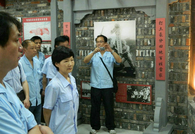 三、憶崢嶸歲月,緬懷革命先烈伴隨著淅瀝小雨,所有黨員在烈士紀念館前集合,在烈士紀念館工作人員的帶領下,隨即開始了正式參觀。烈士紀念館里,陳列著許多珍貴的歷史文物,有革命烈士使用過的步槍、手榴彈、刺刀等,仿真的場景和人物蠟像,生動地展示了當時革命的艱苦歲月。一件件珍貴的遺物,一張張模糊的照片,一段段翔實的文字,讓我門腦海中那模糊的艱難歲月再一次清晰起來。