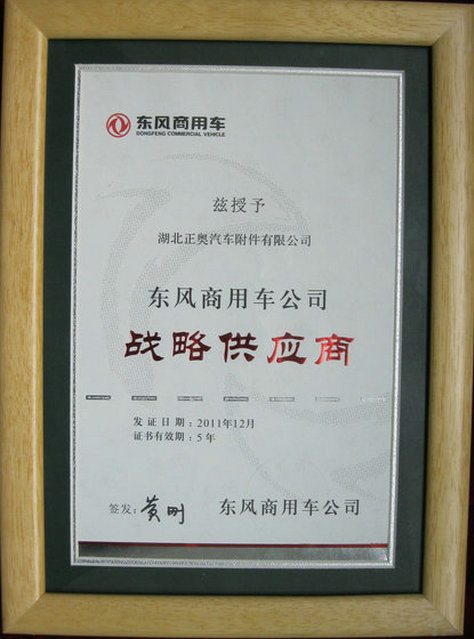 在這次盛會上,正奧公司載譽而歸,喜獲三項項殊榮,分別是:東風(fēng)商用車戰(zhàn)略供應(yīng)商、“2011年度優(yōu)秀供應(yīng)商”和“2011年度質(zhì)量優(yōu)勝“。