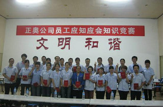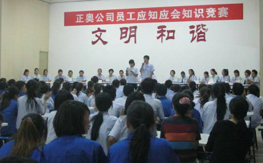 .為了促進(jìn)公司全體一線員工學(xué)習(xí)、掌握崗位應(yīng)知應(yīng)會知識和基本的崗位技能、行為規(guī)范,提升一線員工的綜合技能素質(zhì),正奧公司工會組織生產(chǎn)一線員工,在發(fā)放知識卡片、進(jìn)行全員書面測試的基礎(chǔ)上,選拔優(yōu)秀選手于9月14日晚開展了“應(yīng)知應(yīng)會知識競賽”活動,本次競賽根據(jù)生產(chǎn)工序共選撥7支參賽隊(duì),每隊(duì)由3人組成。通過必答、搶答、觀眾互動等形式,根據(jù)各隊(duì)答題得分情況最終產(chǎn)生一、二、三等獎,公司領(lǐng)導(dǎo)為獲獎選手們頒發(fā)榮譽(yù)證書和獎金。
