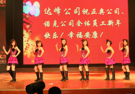 晚會在喜慶的歌伴舞《美麗的心情》中拉開帷幕,也拉開了2012年新的開始;一線工人《時尚秀表演》藝術化的再現(xiàn)工人快樂勞動過程,展現(xiàn)了公司青年職工的青春與活力;此次晚會還特別邀請了邁克爾杰克遜的模仿秀,恒通公司、達峰公司選送的精彩節(jié)目給觀眾帶來無窮的樂趣;由公司領導王榮華領銜表演的歌曲聯(lián)唱給大家留下了深刻的印象,博得陣陣喝彩;特別是公司總經(jīng)理喬虹演唱、職工伴舞的《今夜無眠》節(jié)目將晚會推向了高潮,讓大家仿佛置身于中央春節(jié)聯(lián)歡晚會之中,晚會抽獎節(jié)目再次把晚會氣氛推向高潮。