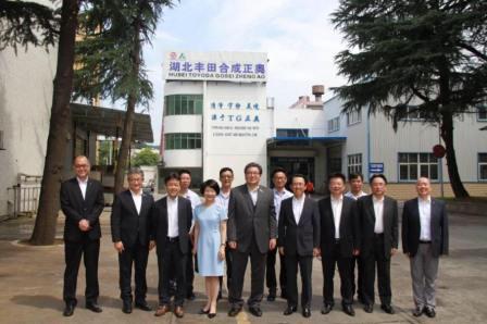 豐田合成株式會(huì)社于1949成立于日本愛(ài)知縣,是日本豐田汽車公司投資的一家全球零部件企業(yè),公司主要生產(chǎn)經(jīng)營(yíng)汽車密封產(chǎn)品、內(nèi)外裝飾部件、機(jī)能部件、安全系統(tǒng)產(chǎn)品等,在全球17個(gè)國(guó)家/地區(qū)擁有65家集團(tuán)公司,擁有3萬(wàn)8千多名員工。其中在中國(guó)有13家,分布在天津、廣東、福建、張家港、十堰等地。其中十堰豐田合成正奧于2019年1月與湖北正奧集團(tuán)合資成立。此行是合資后宮崎社長(zhǎng)首次到訪豐田合成正奧。